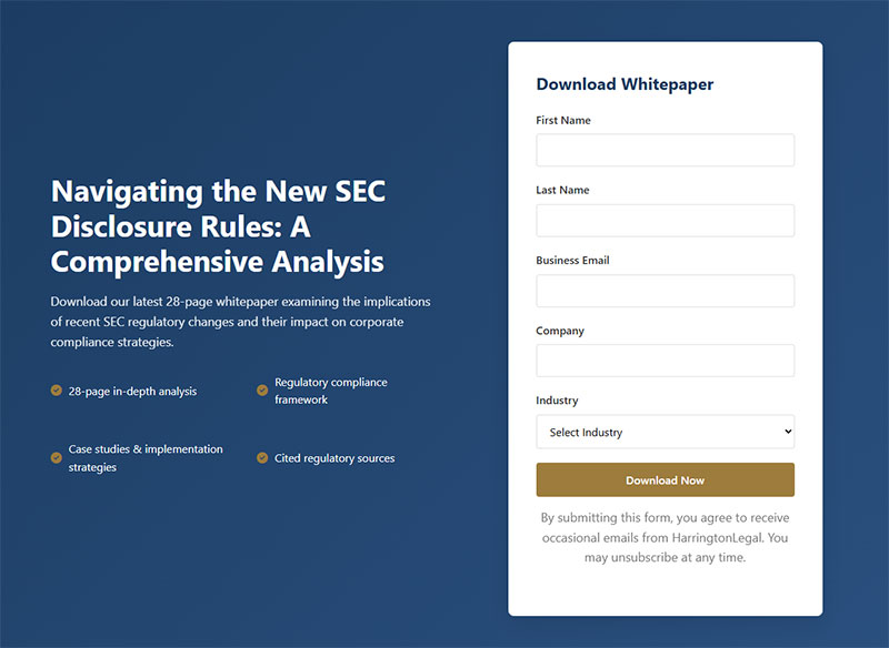Personal injury prospects want accident checklists and case value calculators. Business clients need operating agreement templates and compliance guides. Family law searchers look for divorce process timelines. Match your lead generation form offers to specific practice area questions people actually search for.
