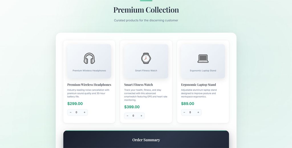 A sophisticated, conversion-focused order form built with vanilla HTML, CSS, and JavaScript. Features a contemporary glassmorphism design with smooth animations and premium UX patterns.