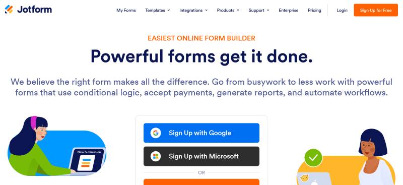 | JotForm | Drag-and-drop builder, payment forms | Free, Premium from $24/month | Easy | PayPal, Stripe, Google Sheets |